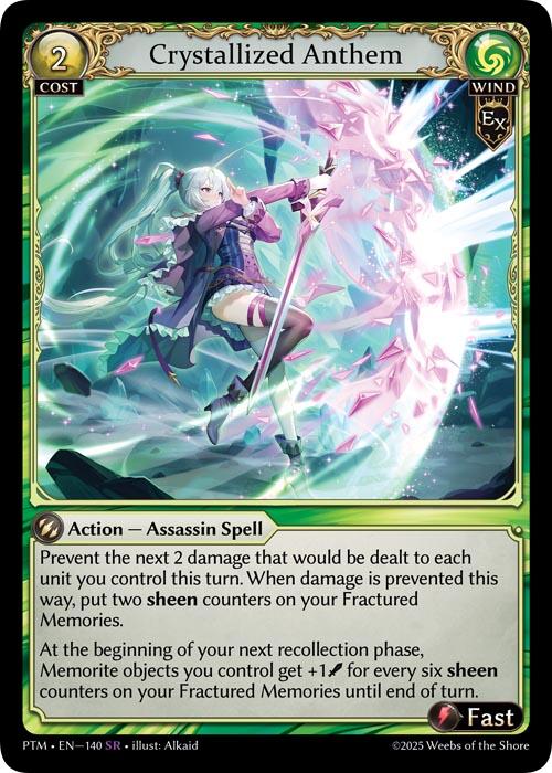 Description: Prevent the next 2 damage that would be dealt to each unit you control this turn. When damage is prevented this way, put two sheen counters on your Fractured Memories.