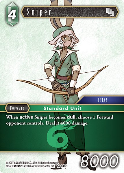 Description: When active Sniper becomes dull, choose 1 Forward opponent controls. Deal it 4000 damage.