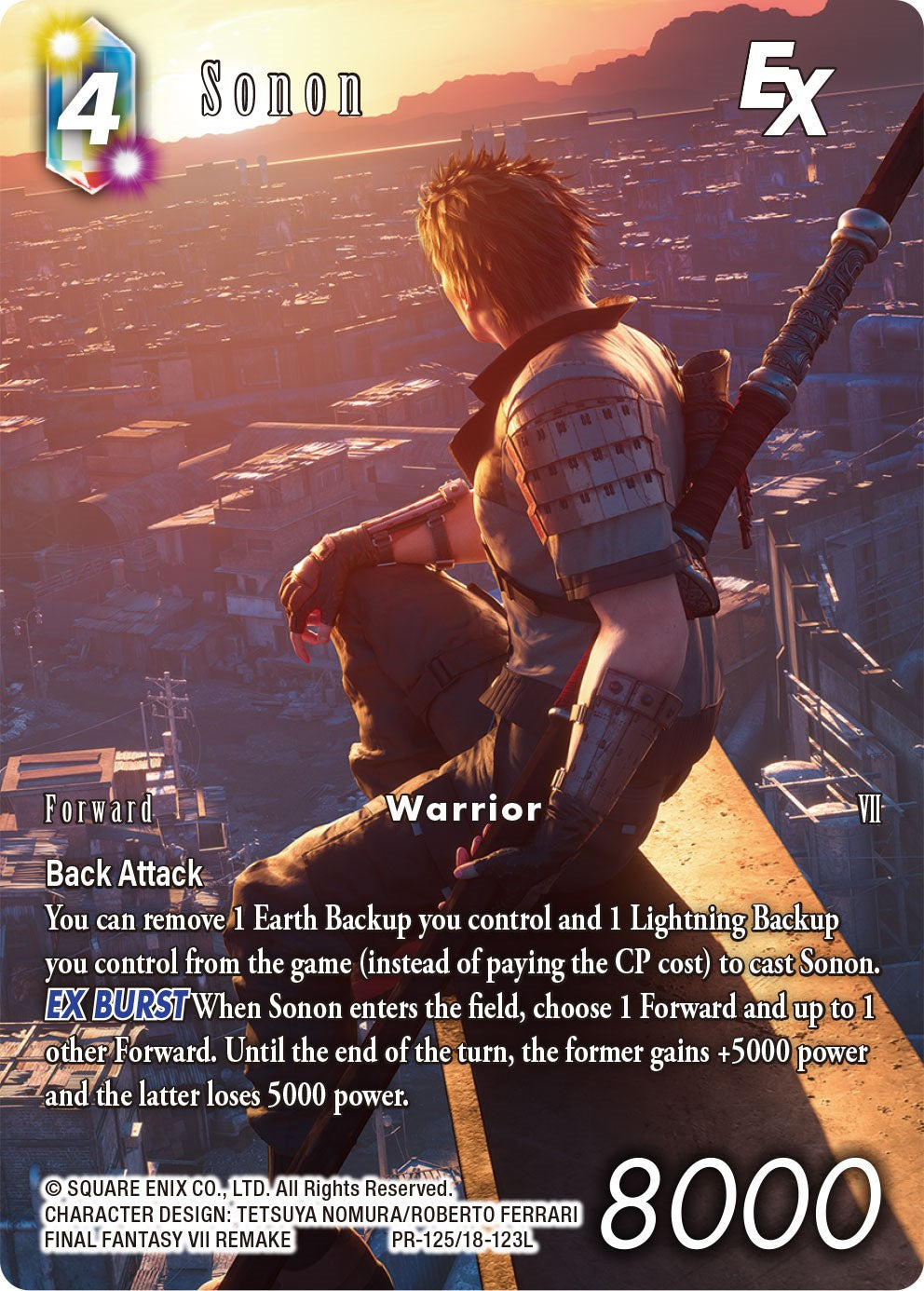 You can remove 1 Earth Backup you control and 1 Lightning Backup you control from the game (instead of paying the CP cost) to cast Sonon.